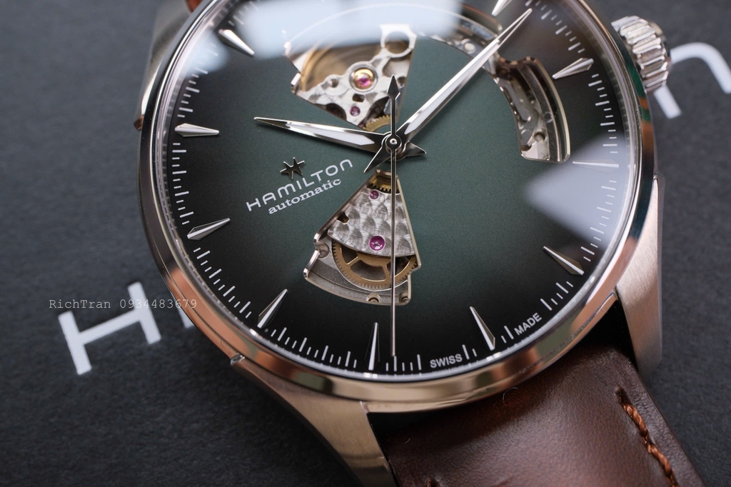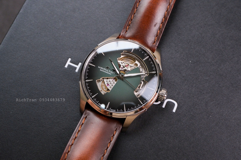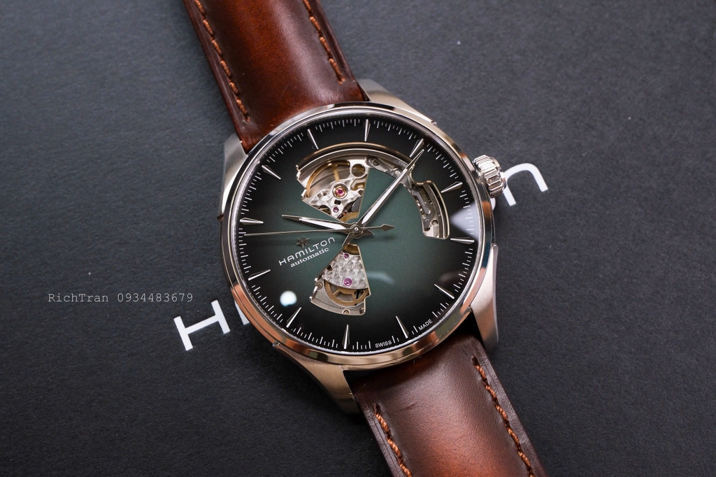 Đặc trưng của dòng Jazzmaster là dial được trạm trổ Skeleton cực đẹp và nổi bật. Bộ máy đã được nâng cấp lên H-10 với 80h trữ cót khủng.