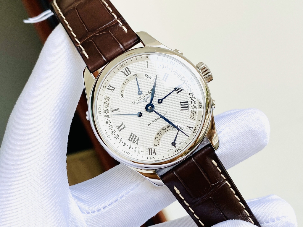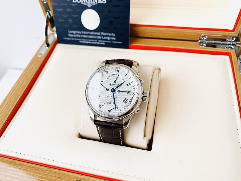 Nếu như bạn yêu thích những thiết kế đồng hồ phức tạp, thì chắc chắn Longines Master Collection L2.715.4.71.3 là một sự lựa chọn hoàn hảo. Chiếc đồng hồ thiết kế với kích thước vừa vặn 41mm, bộ vỏ từ thép không gỉ và dây đeo tay da cá sấu. Đặc biệt hơn cả, phiên bản Longines lần này được trang bị bộ 4 núm chỉnh giờ đặc biệt, để điều chỉnh thời gian và lịch thứ, ngày.