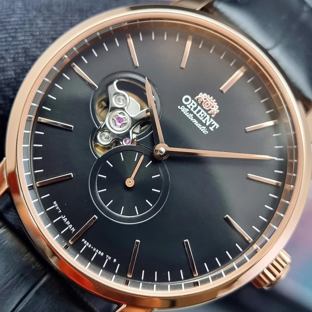 Nằm trong những model mới nhất của hãng Orient, Được trang bị thêm kim giây nhỏ góc 6h- Open heart góc 9h đẹp mắt thích hợp cho các anh trai văn phòng hiện đại.
