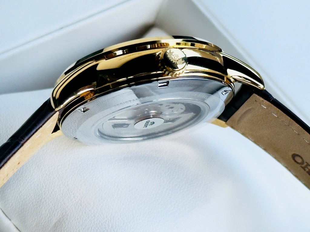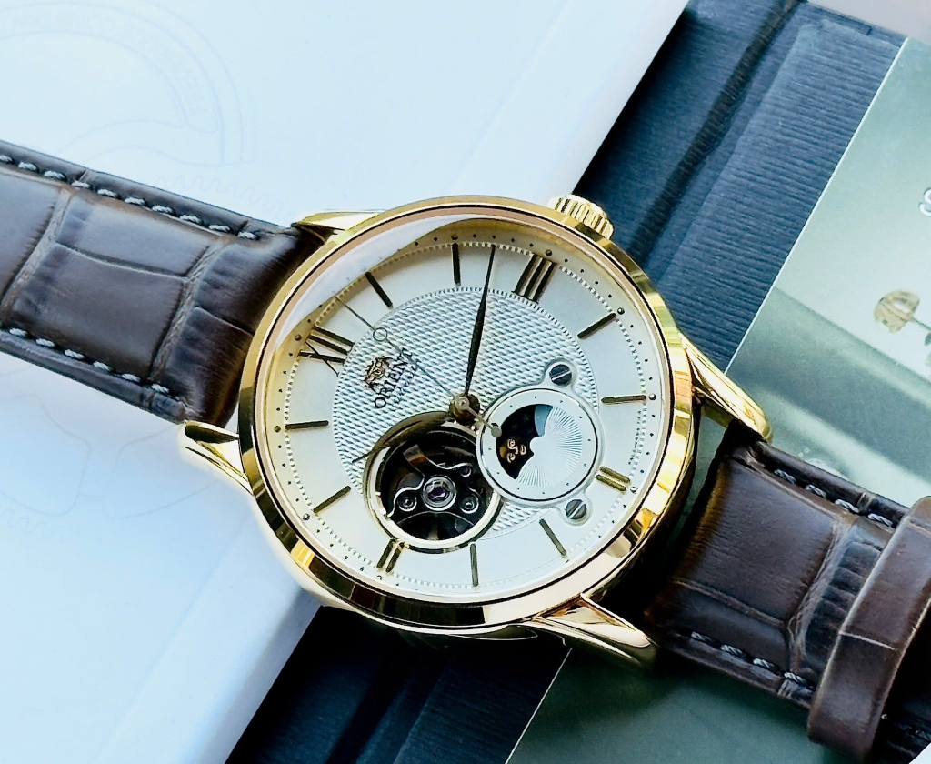 - Máy Automatic in-house Caliber F6L24 mới nhất của Orient, tần số dao động 21600 vph, 22 chân kính, trữ cót hơn 40h