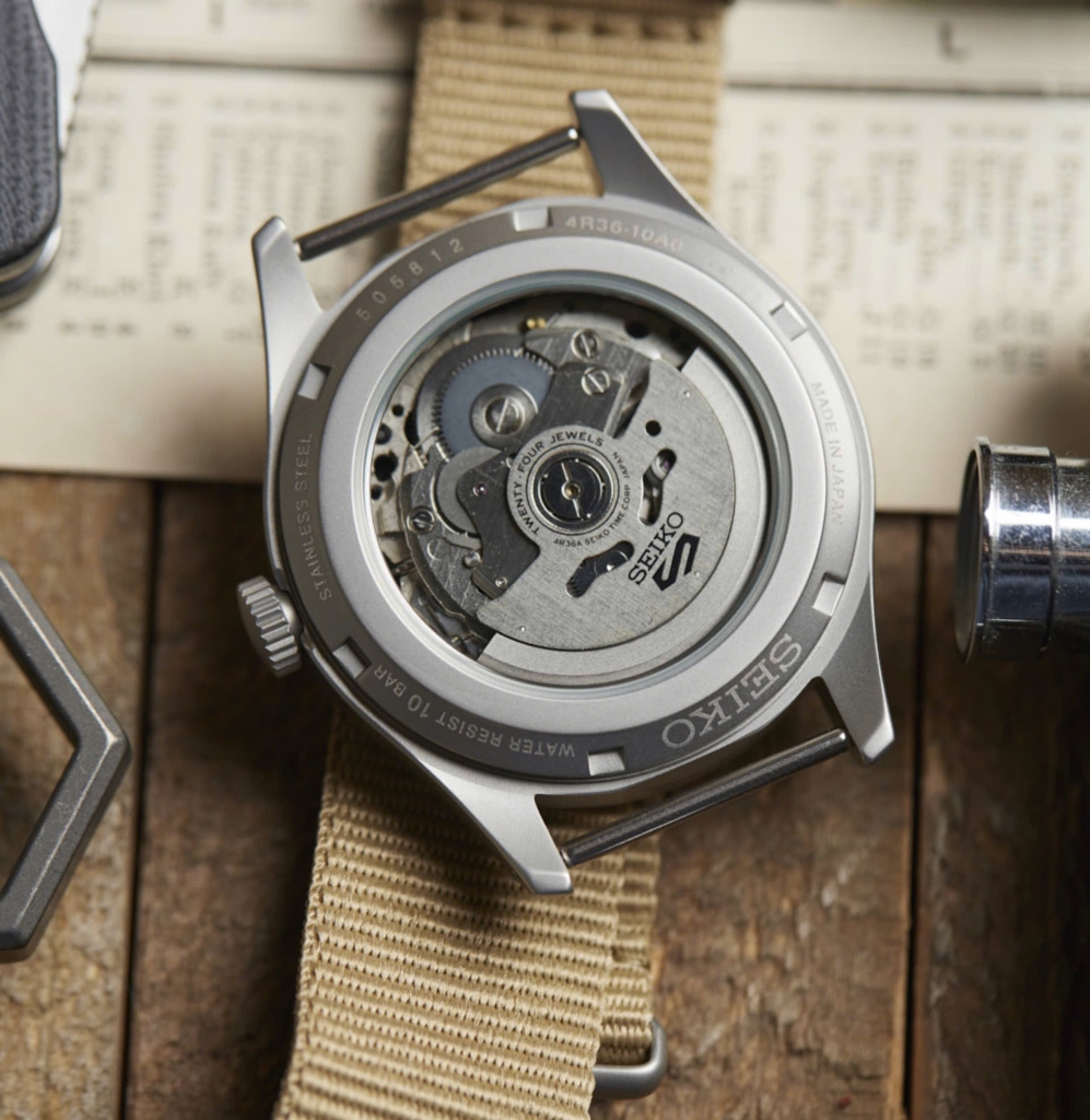 - Máy automatic (Cơ tự động) 4R36 với 24 chân kính và 41h trữ cót, có dừng kim giây khi chỉnh giờ, có cót tay.