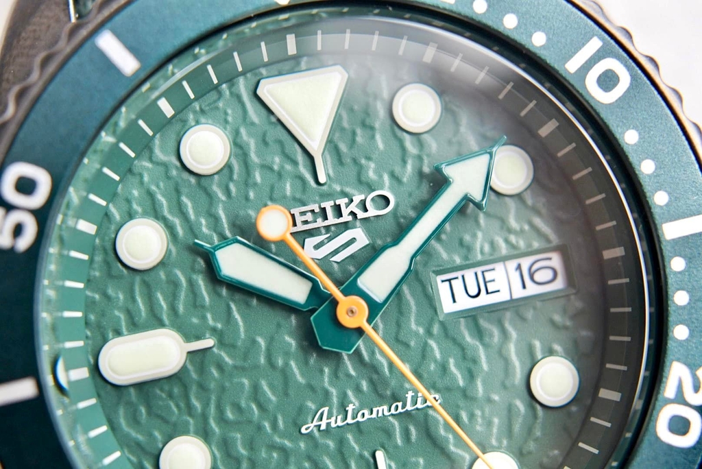 Dial màu xanh green sần cùng tạo hình siêu khỏe khoắn.