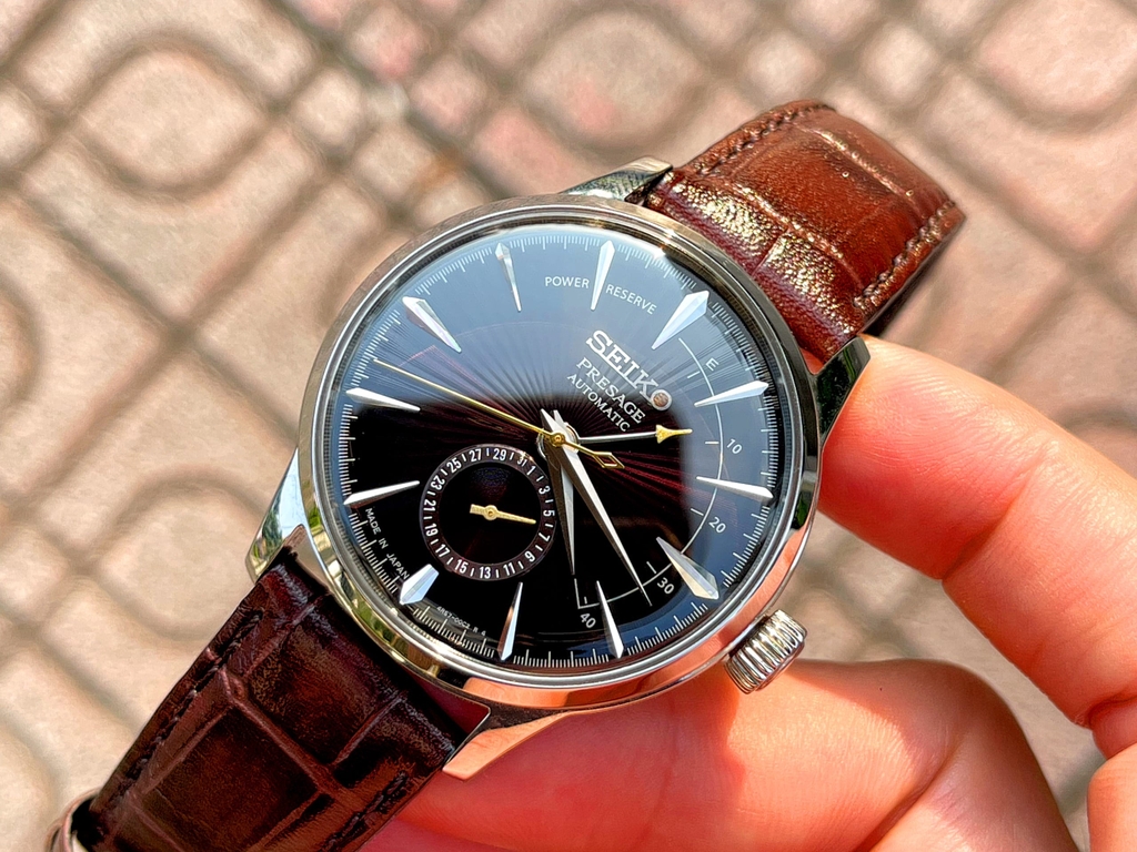 Đặc biệt chiếc đồng hồ này sở hữu mặt số màu nâu đỏ chải tia Sunburst cực kỳ đẹp.