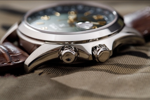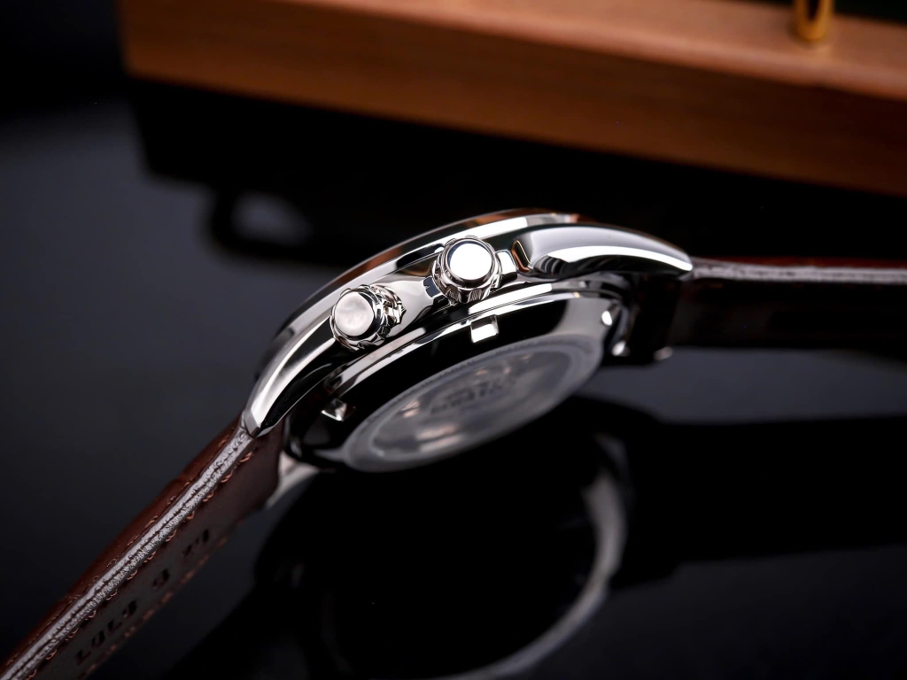 - Bước 1: Bấm nút phía trên 1 lần => kim giây trung tâm hay còn được gọi kim giây của giờ thể thao (Chronograph giây) bắt đầu chạy.
